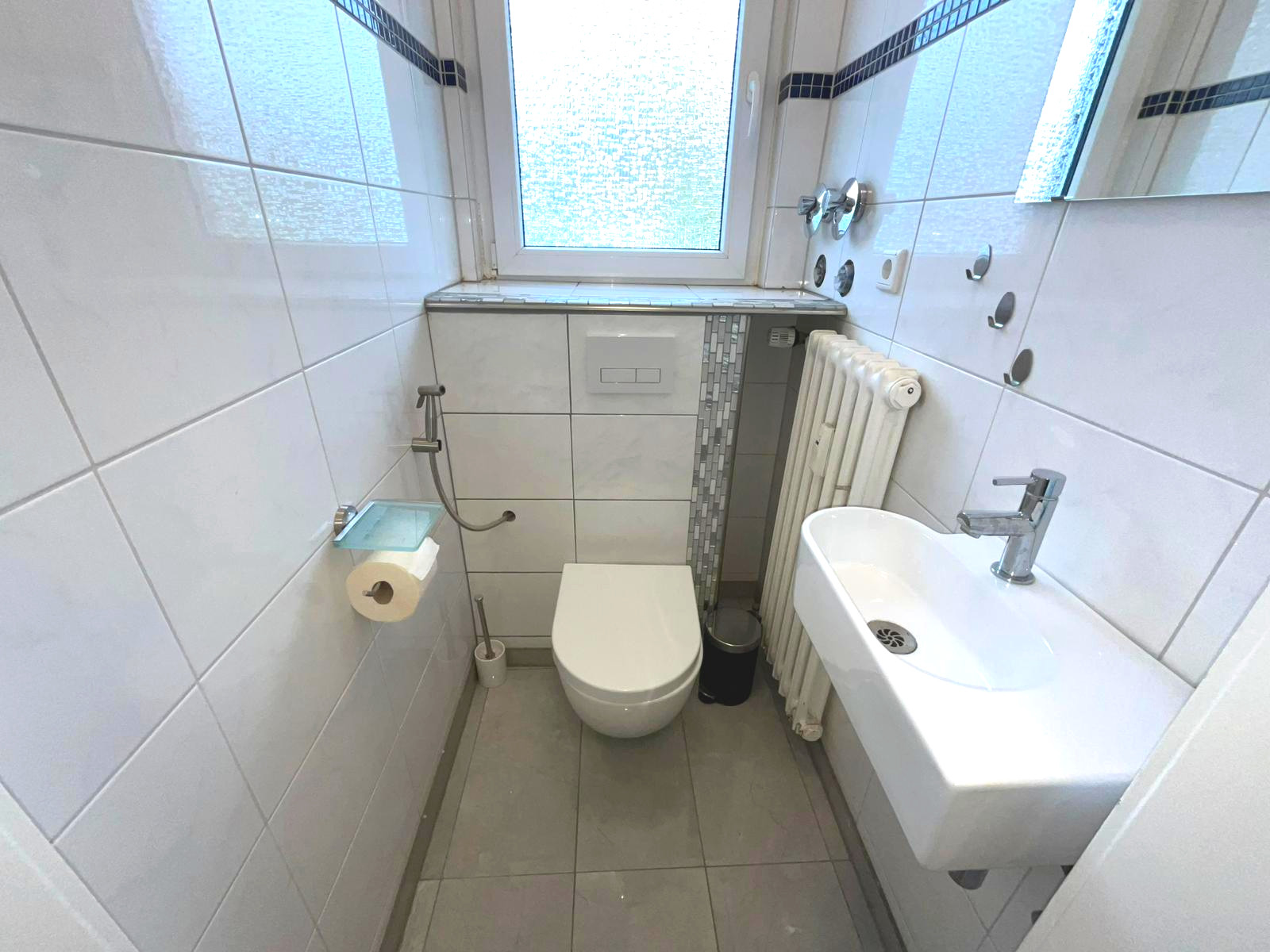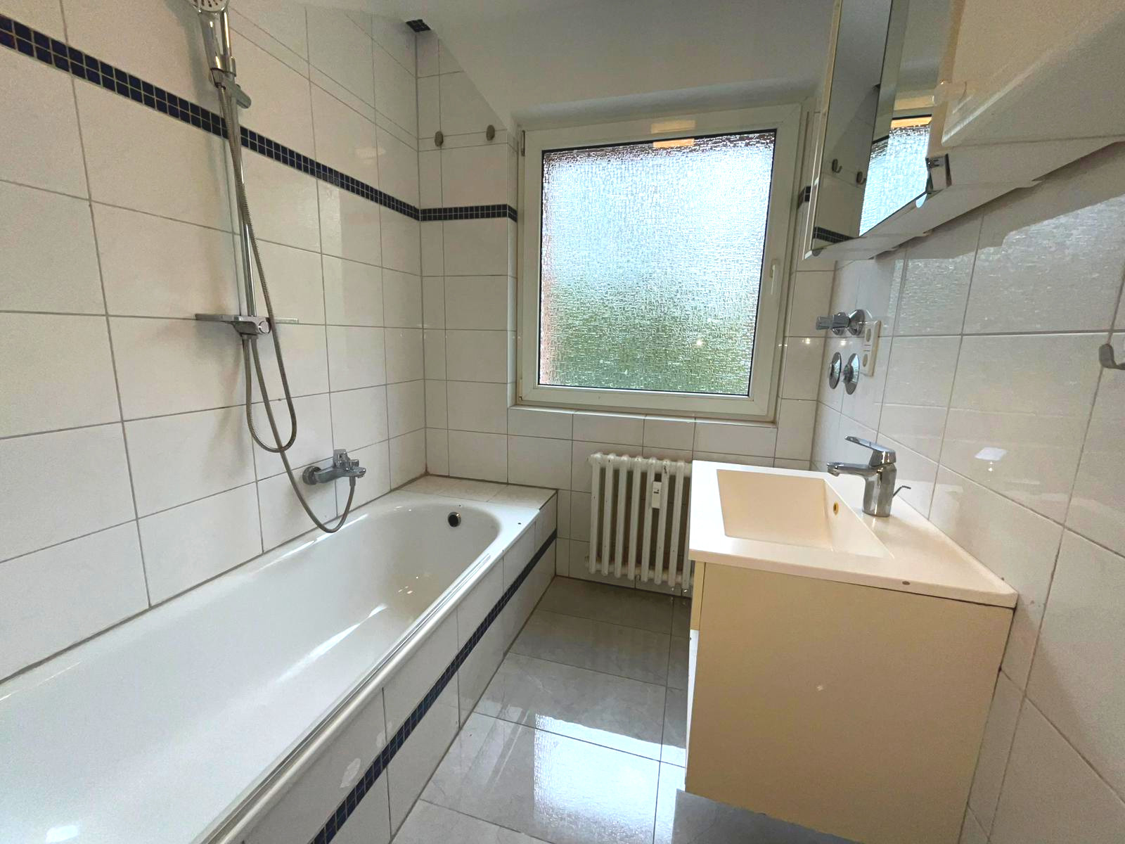 - neutrale Fliesen in der gesamten Wohnung
